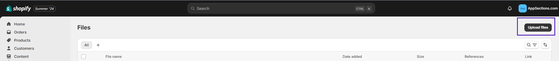 * In the left-hand dropdown menu, click on **Content** and then select **Files**.