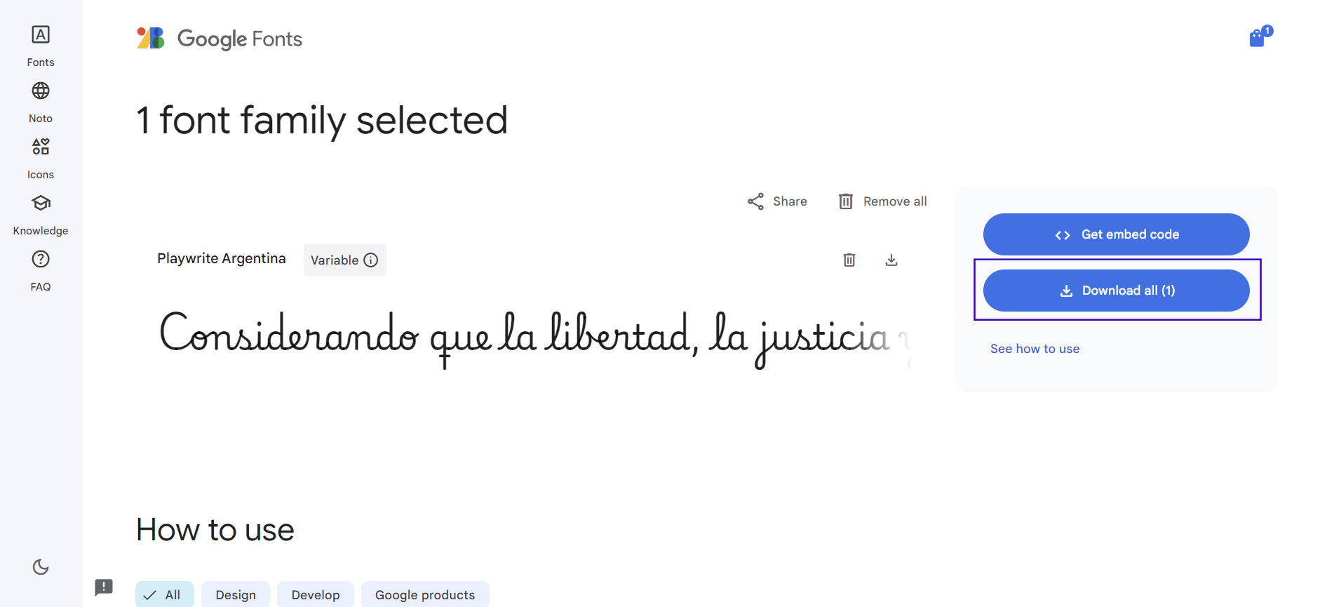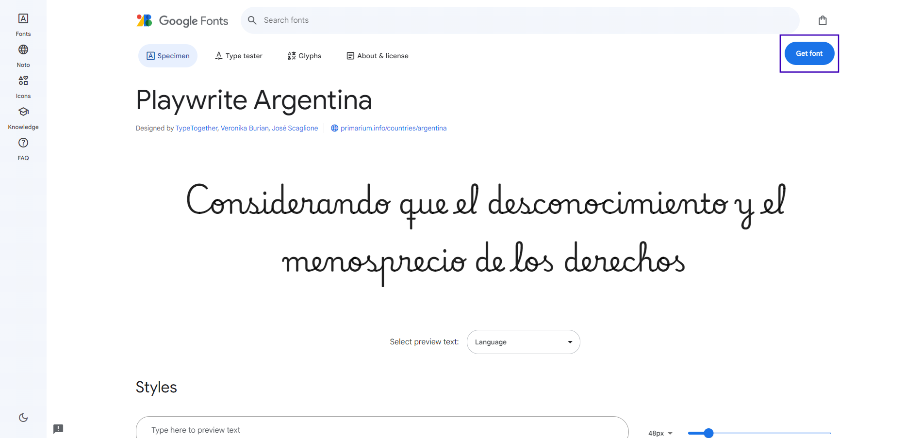 * Click on the **Get font** button.