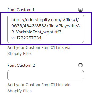 * Paste the URL link into the **Font Custom 1** or **Font Custom 2** field.