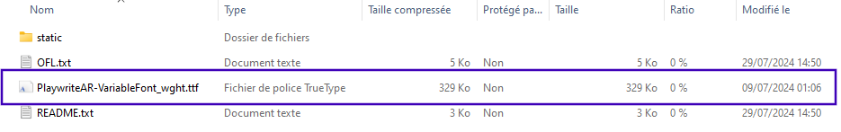 * Extract the `.ttf` file (TrueType Font file) from the ZIP archive.